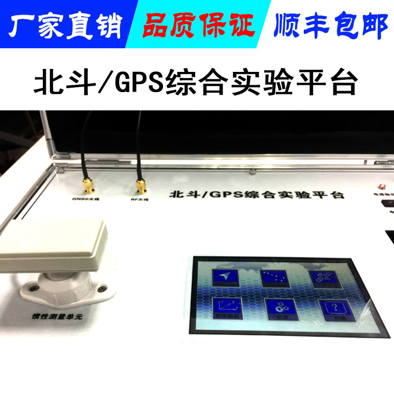 北斗/GPS综合实验平台,由实验平台的硬件和上位机软件两部分构成,硬件部分可以完全独立工作。硬件部分主要由GPS/北斗有源全向天线,GPRS天线,显示解算信息的LCD触摸屏,惯导组件;上位机软件部分,能够进行数据采集,进行开源实验,循序渐进的实验步骤和简单易懂的可视化操作。
